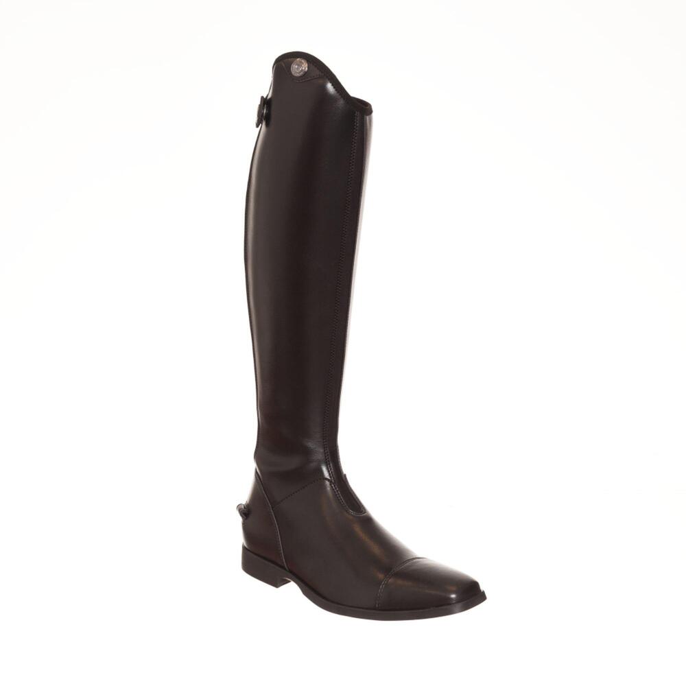 Bota produzida em material sintético "soft touch", gaspea lisa, bico quadrado, slim fit , ziper resistente YKK, elástico lateral e frontal, solado de borracha.