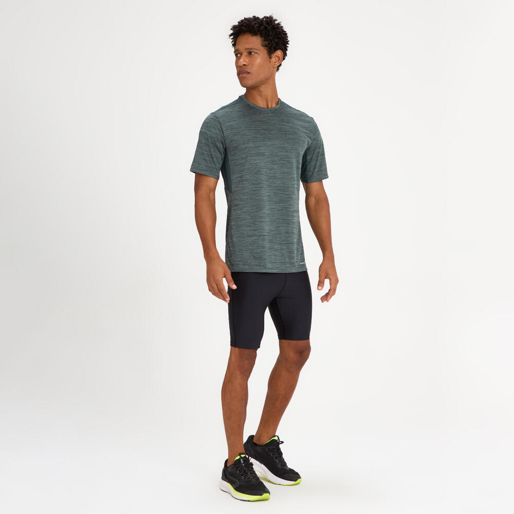 Economia de R$ 30,00Nossos designers criaram essa camiseta de corrida respirável e macia para homens para tornar suas corridas em clima quente mais agradáveis.