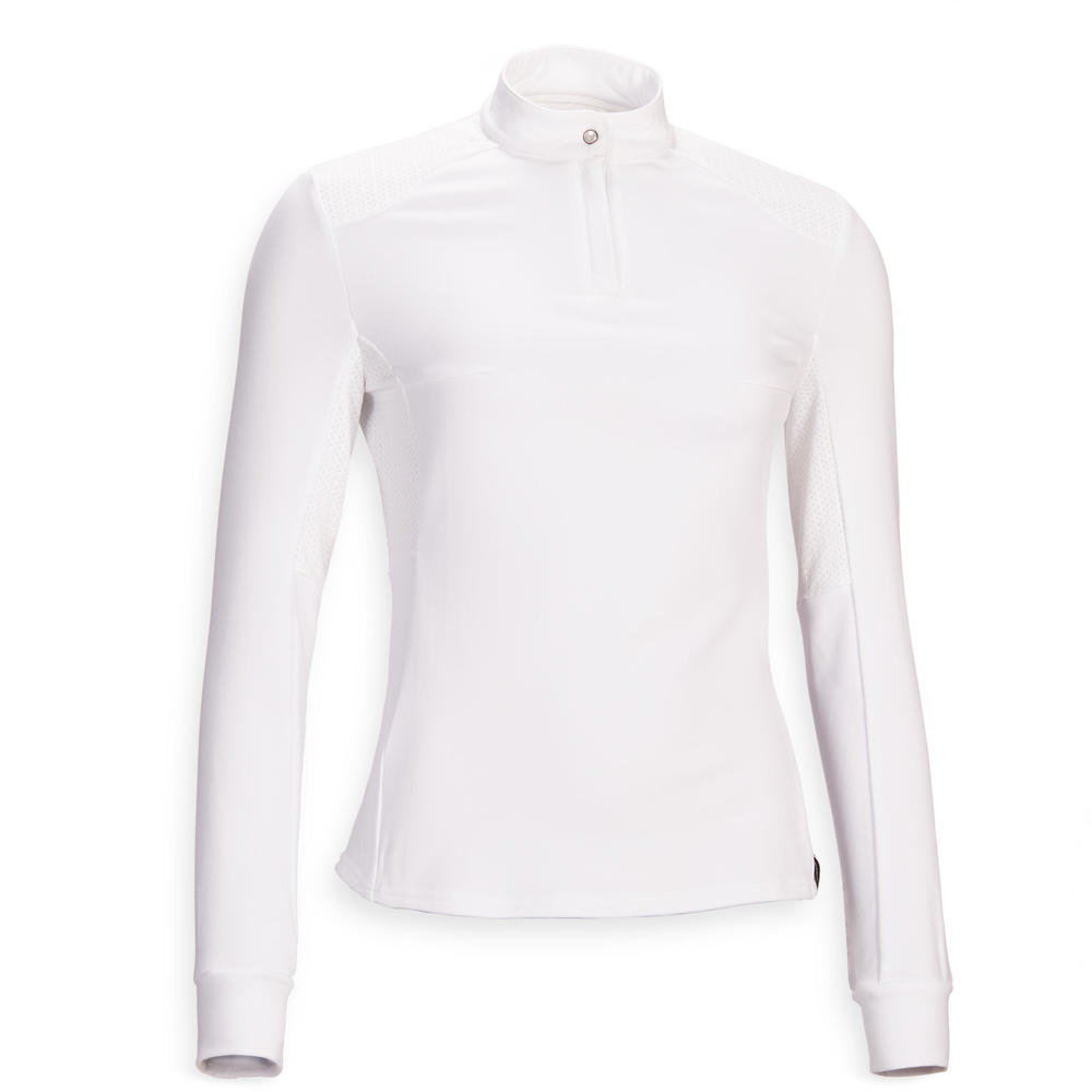 O polo de equitação 500 COMP é ideal para os concursos no inverno. Usado por cima da pele sob o casaco, é simultaneamente quente e respirável para garantir a liberdade e o conforto necessários!