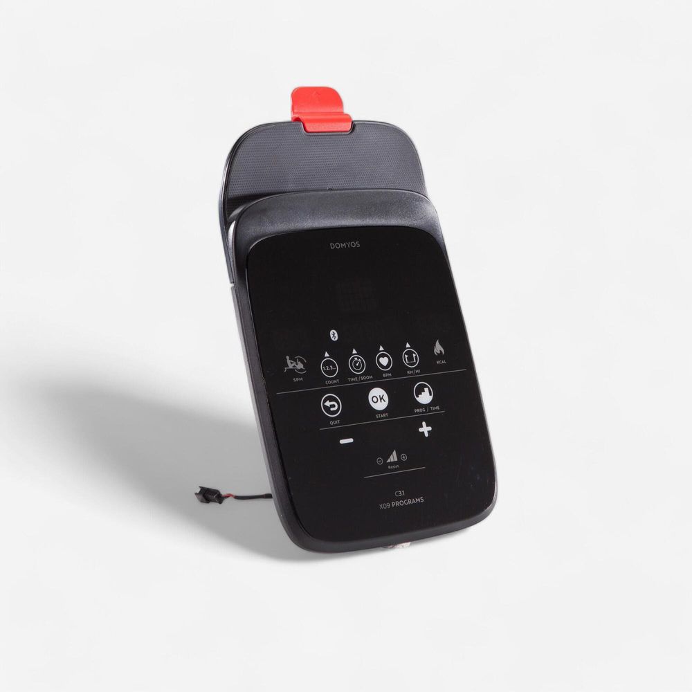 Consola que permite a consulta das funções de utilização, a regulação da resistência da pedalagem, a utilização dos programas internos da consola e a conexão Bluetooth para a plicação.