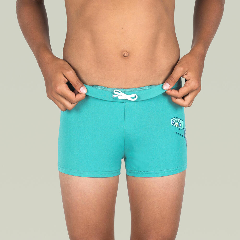 informacoesTecnicas | ComposiçãoTecido principal: 100% - Poliéster. Forro principal: 100% - Poliamida. Roupas de nataçãoBoxer - altura lateral 18,5 cm (no tamanho de 10 anos) Material:Os nossos engenheiros desenvolveram um material à base de poliéster e substituíram as fibras de elastano pela fibra PBT, que garante a elasticidade necessária para garantir o conforto mas, acima de tudo, resistir às agressões do cloro.